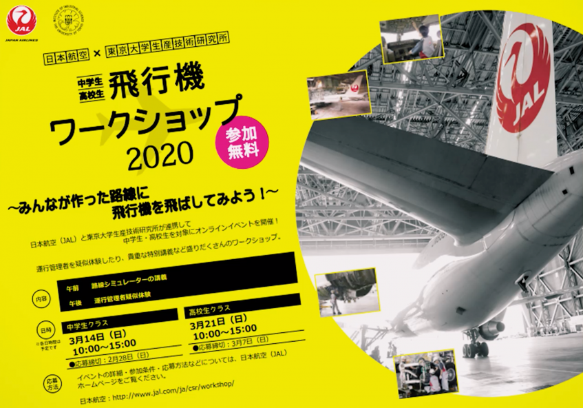 イベント日本航空(JAL)×東京大学生産技術研究所 飛行機ワークショップ2020~みんなが作った路線に飛行機を飛ばしてみよう!~