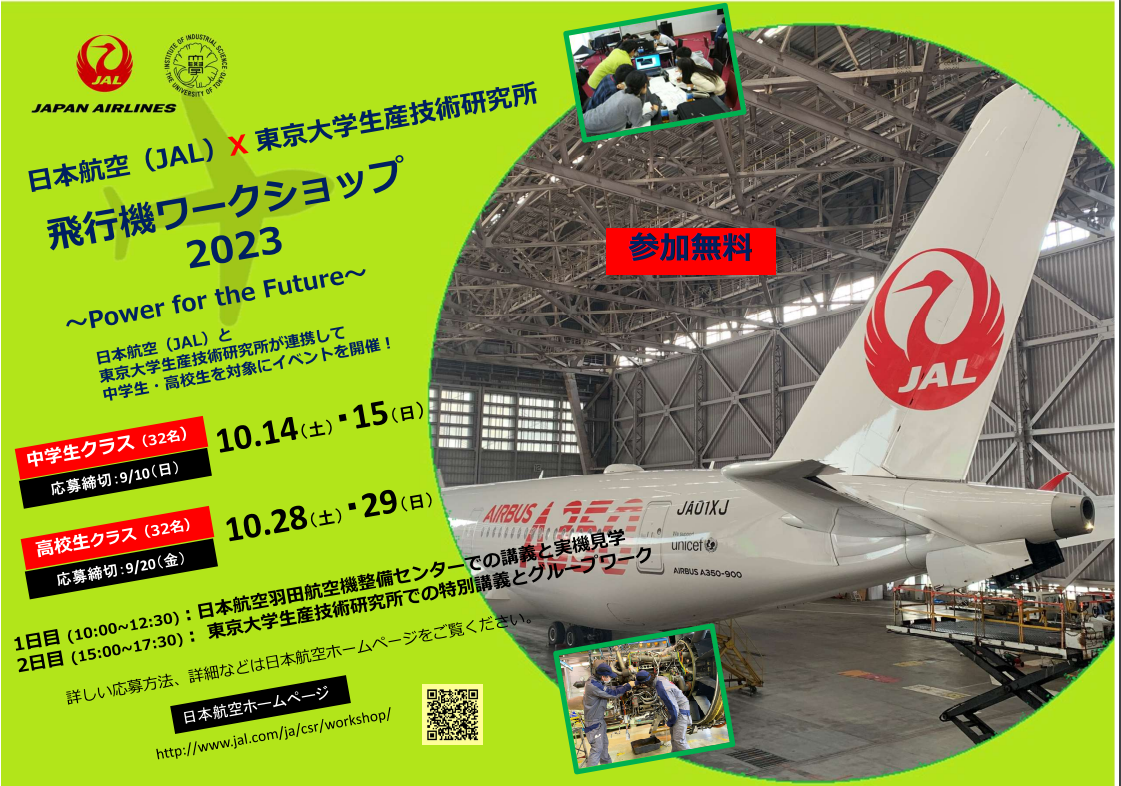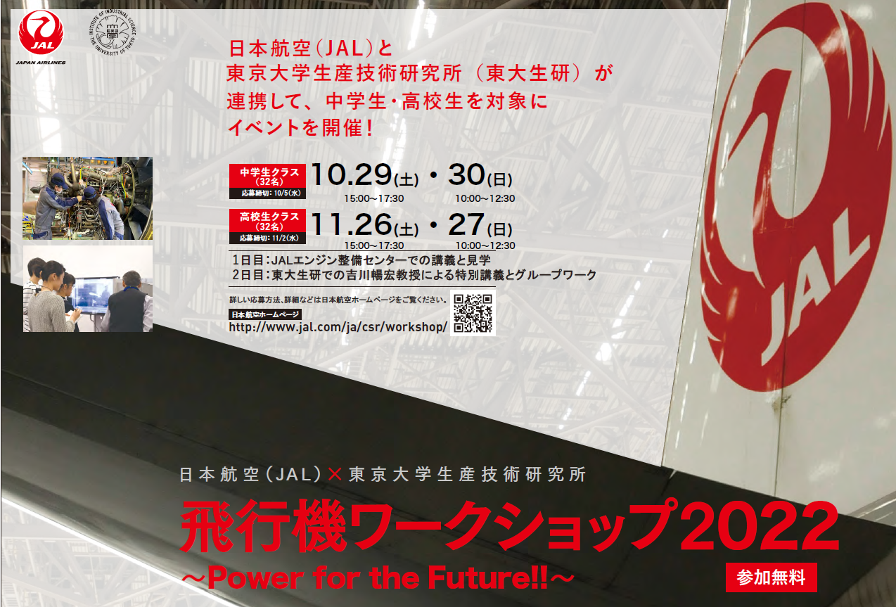 JAL×東大生研 飛行機ワークショップ2024 ~空のサステナビリティを考えよう!!~ このワークショップは、JALと東大生研 次世代育成オフィスが連携し、お互いのリソースを活用して次世代を担う...