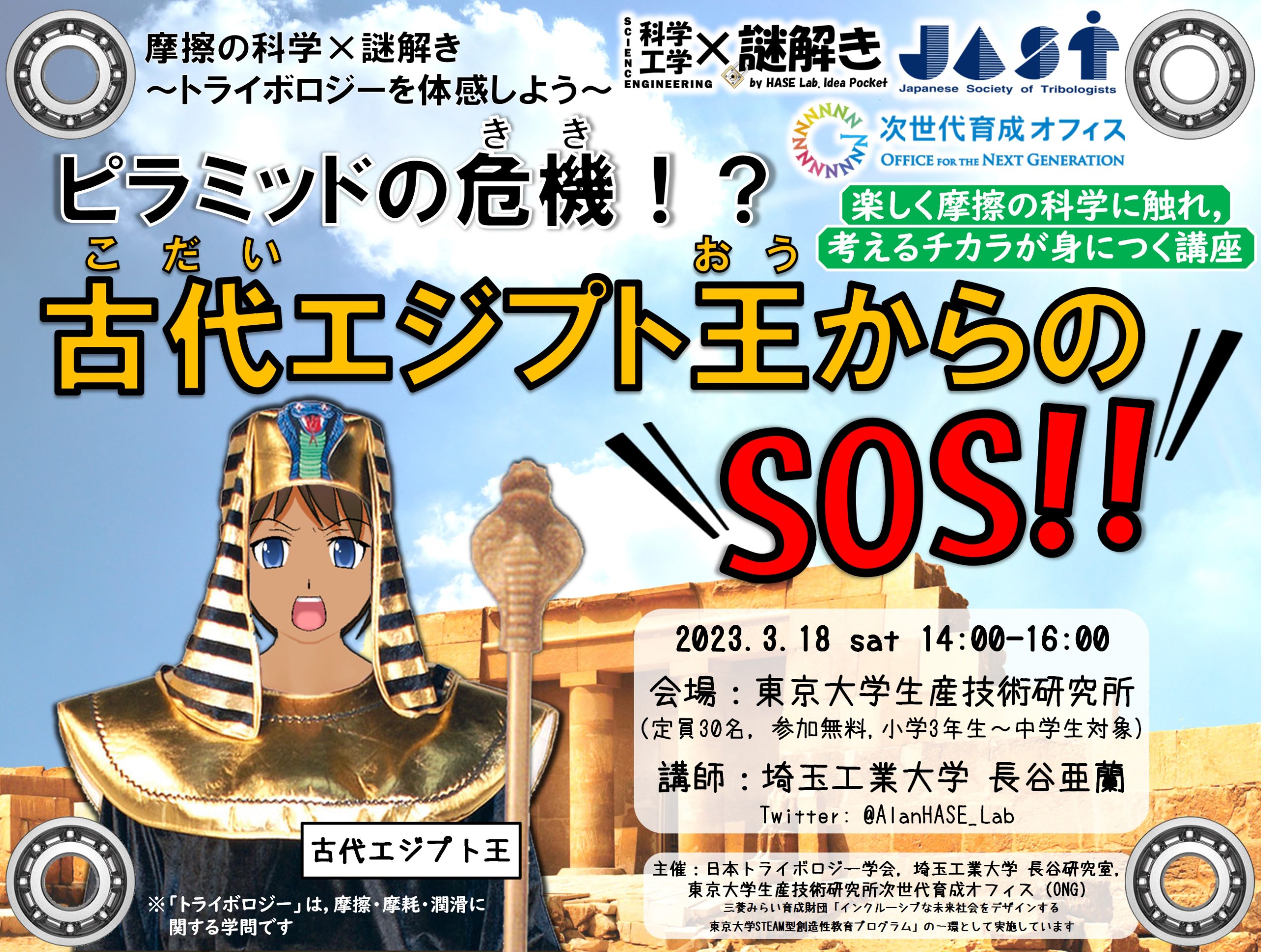 開催終了イベント2025.03.0114:00-16:00【終了しました】摩擦の科学x謎解き ”ピラミッドの危機!? 古代エジプト王からのSOS!!”
