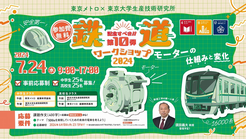 東京地下鉄株式会社(本社:東京都台東区、代表取締社長:山村 明義、以下「東京メトロ」)と東京大学生産技術研究所(東京都目黒区、所長:年吉 洋、以下「東大生研」)は、「鉄道ワークショップ2024~モータ...