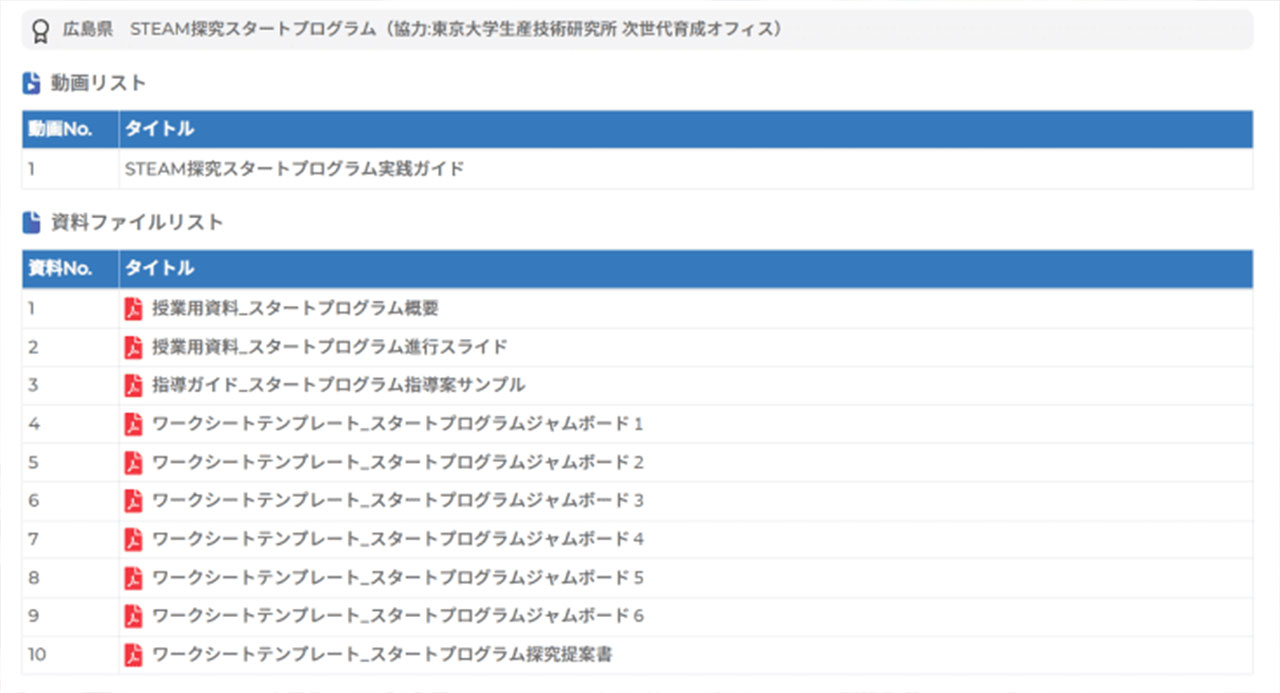 ※ このページの中ほどにある、【広島県 STEAM探究スタートプログラム(協力:東京大学生産技術研究所 次世代育成オフィス)】をご覧ください。